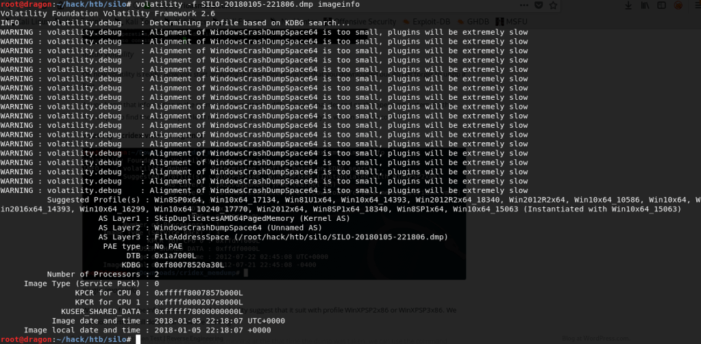 volatility -f SILO-20180105-221806.dmp imageinfo