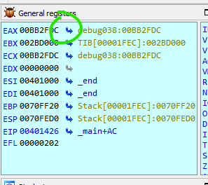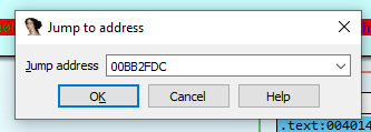 additionaly, we can see that byte ptr [eax] is pointing to memory 00BB2FDC, we can go jump there by two ways which are