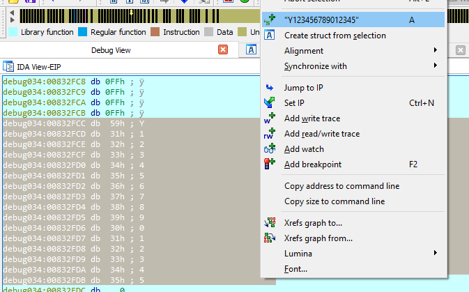 I would also like to inform you that IDA has capability to define series of memory to become string so that it is easier to read by selecting the memory address then right click or press A to make it as string