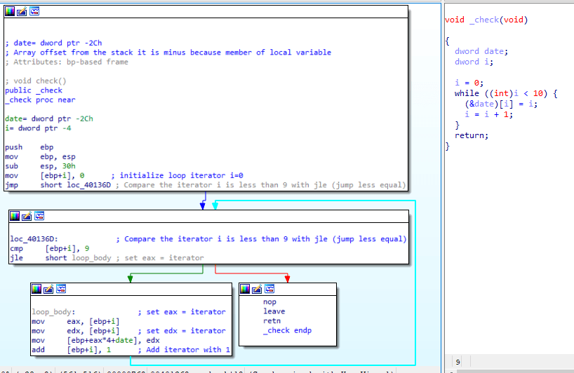 Here is below the assembly code of the above code that I will explain one by one. The below code is check function.
