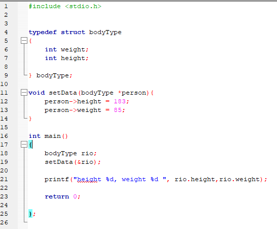 We see from the above code that we are using a C struct called bodyType which has two field those are weight and height. Both of the field is integer.