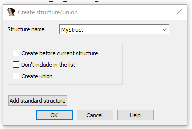 A dialog box will appear like below, there you can add new struct name that you want to use