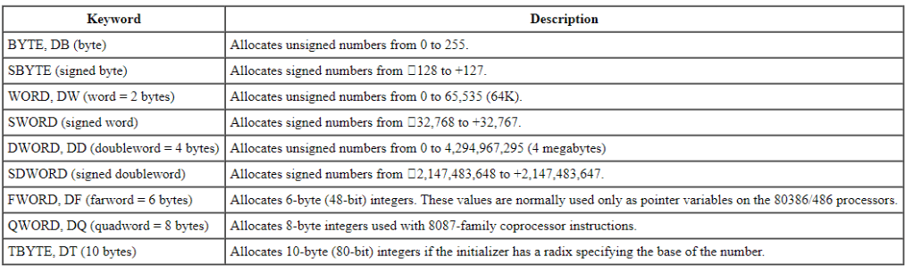 dd = Defined Double Word 4 Bytes in x86 32 bit system