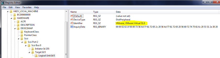 HKEY_LOCAL_MACHINE\HARDWARE\DEVICEMAP\Scsi\Scsi Port 2\Scsi Bus 0\Target Id 0\Logical Unit Id 0