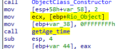 We can see the function call is just like another C function call. But we can see that before the function call there is ECX assignment and push to the stack as parameter. It is the sign of there is an object oriented function call.