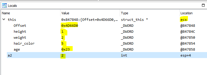 If we looked at the assembly code from the compiled PE, We can see that there is no longer object oriented in the assembly code. Any function call from the object will be like normal function written in C code