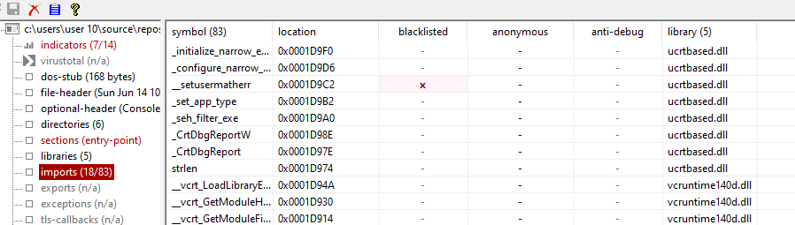Based on above table, The malware analyst or sandboxing system will be able to determine that your application will call MessageBox somewhere in the code so that it is easier to identify it during static analysis.
