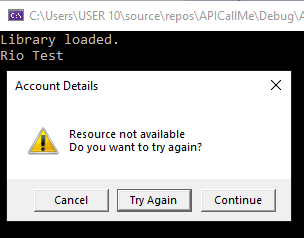(LPCWSTR)L"Resource not available\nDo you want to try again?",