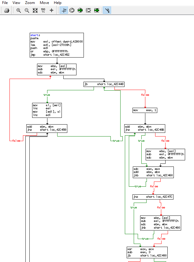 We can see from the flow chart the flow will end at unk_411659. With this information then basically we can know see where the unpacker stub will assign new entry point but since it is static analysis then the new address for the new entry point has not been known.