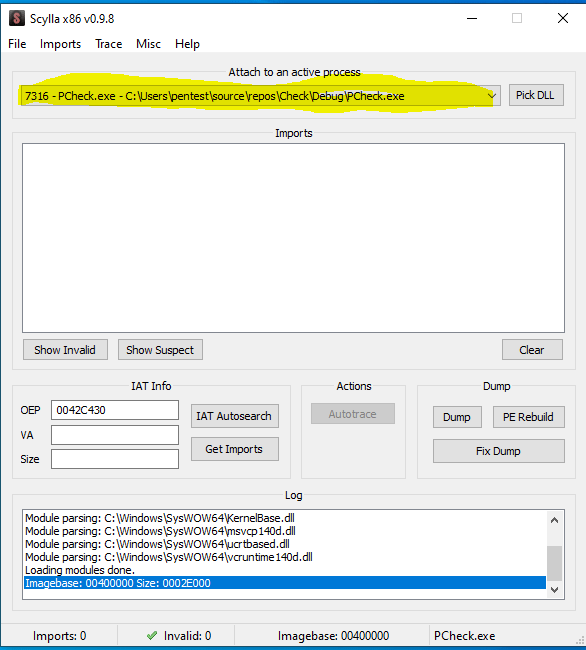 Now the next steps is to fix our Dump that we have done before. in that dump the import table has not been identified as below