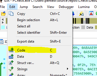 We are now in the data section where we can change into code by pressing “C” or goto edit menu and select menu code