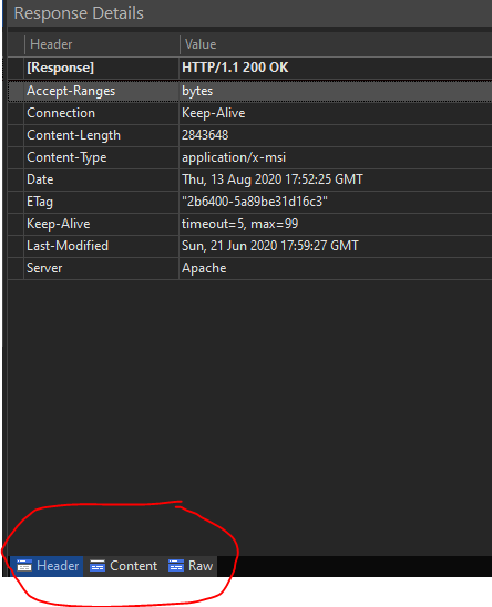 The server responded OK with status 200 at Specific date. We see that there are three subsection that we can use for analyzing the detail. We can also see the content that server delivered to the client in the content tab