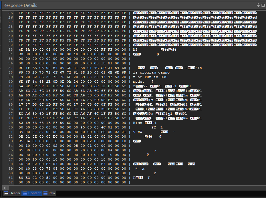 Most malware will download their payload in the second or third stage to evade the malware detection and sandbox. If you wished to find out the payload that has been downloaded, you could see it in the request and response detail window.
