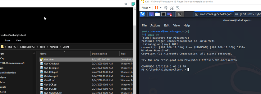 In this tutorial, I will create a reverse shell payload and embed it into a CHM file with the help of Nishang PowerShell. I will use commando VM to help me develop and test the CHM file since most of the application for hacking is already set there