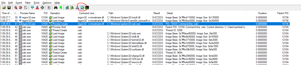 Before you run the riomalware.dll, you need to have the procmon be ready by clicking the capture button.