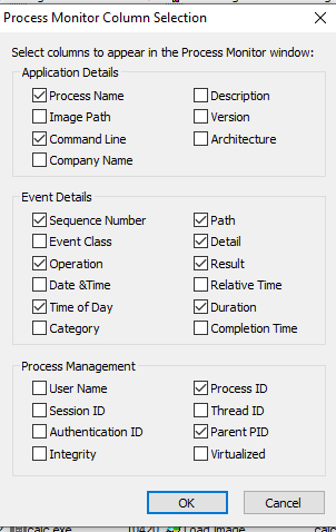we can see that regsrv32 create process calc from the path C:\Windows\system32\calc.exe. To gathere more data, you can adjust the column to enable more information shown in the window using the following steps