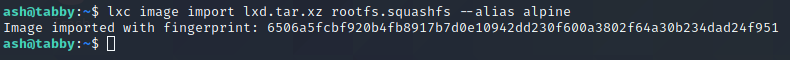 lxc image import lxd.tar.xz rootfs.squashfs --alias alpine