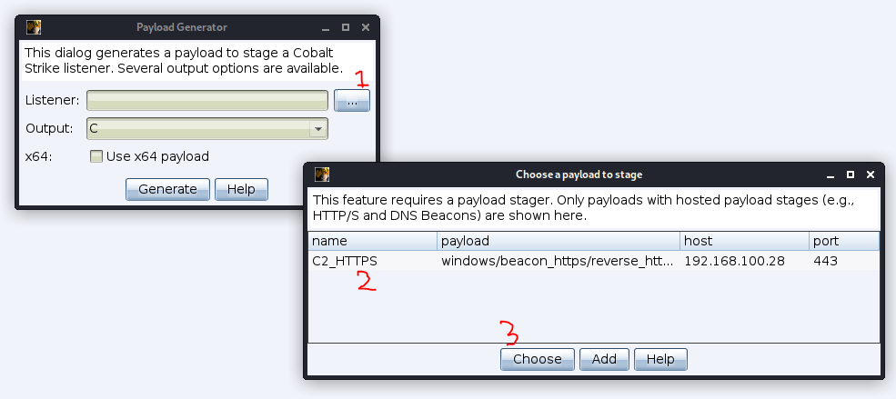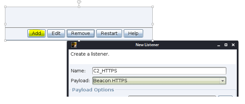 And press Add to input the beacon details. You can set the name to what ever you want as identifier to your listener. The next is to choose your payload where in this tutorial we use Beacon HTTPS