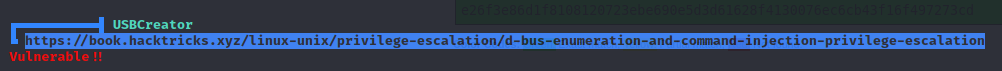When I do the post-exploitation enumeration with linpeas.sh, I found that this host is vulnerable to the USBCreator D-Bus privilege escalation as shown below
