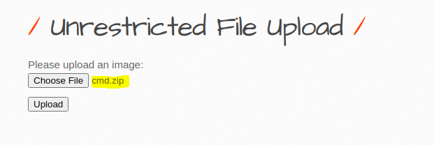 I use bWAPP to give the walkthrough. Lets exploit the first one that is Unrestricted File Upload. First you need to create a php file that contain small code to accept code execution and give name cmd.php