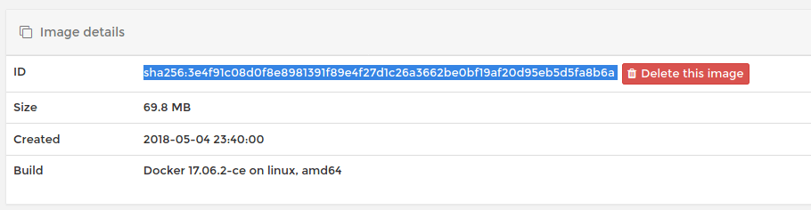 Copy the image id that you want to create and run. For example sha256:3e4f91c08d0f8e8981391f89e4f27d1c26a3662be0bf19af20d95eb5d5fa8b6a