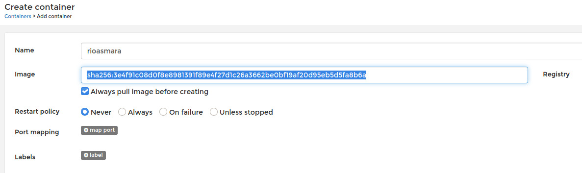 Once you have the id, You need to create and run a container based on the image you choosed. To initiate it, you can go to the container section and press add container