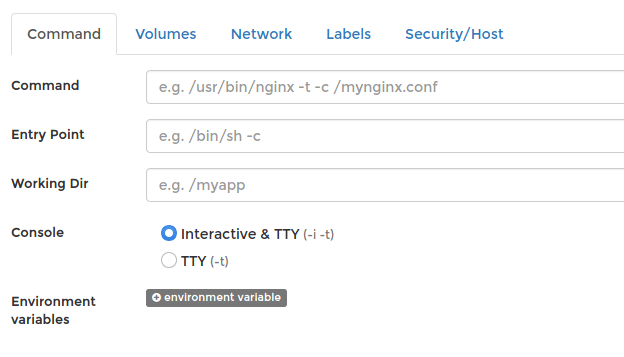 Set the console to Interactive & TTY (-i -t)