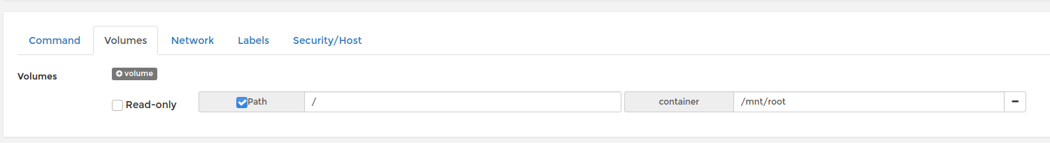 Set to mount the / root of the host to /mnt/root in the docker