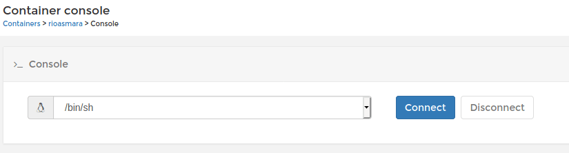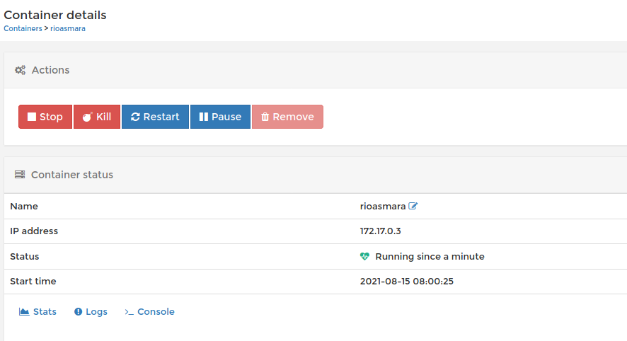 You can see that the new container is running. In order to access the container console, you can click on the name of the container