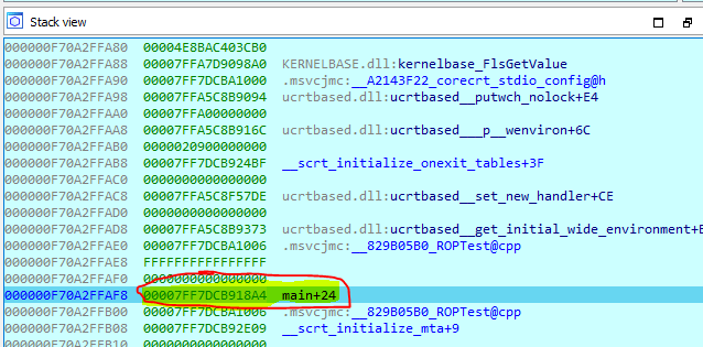 We need to find in the stack where the RET address will go, in this case the RET address will point back to the main function right after the call to j_check which is 7FF7DCB918A4