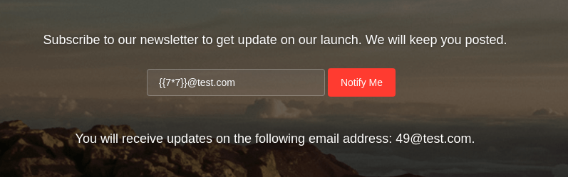 We test to input the email address with {{7*7}}@test.com and it is giving us the output 49@test.com which means the template engine is vulnerable to injection which cause server side execution
