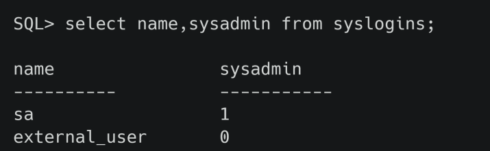 From the output above, We can see that the lazy DB admin uses sa account to create external DB link from POO_CONFIG to POO_PUBLIC where allowing the hacker to execute SQL query as DBA (Sysadmin) on POO_PUBLIC