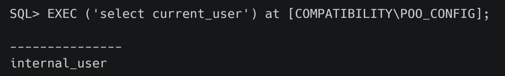 Database POO_PUBLIC has an external link to POO_CONFIG, The below query is to check the availability of external link. We can see that POO_CONFIG return flag 0 which says that it is remote database