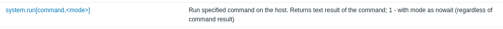 One of the interesting Key is allowing us to run command on the Zabbix server which is system.run[]