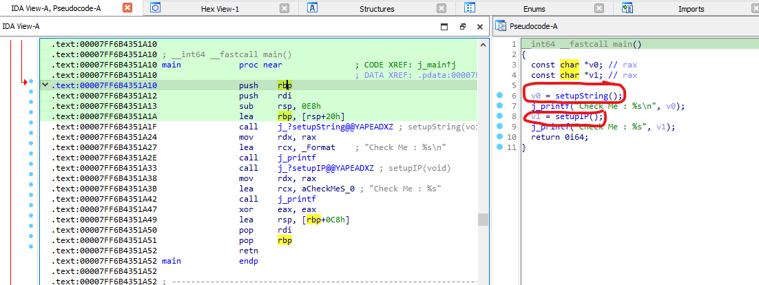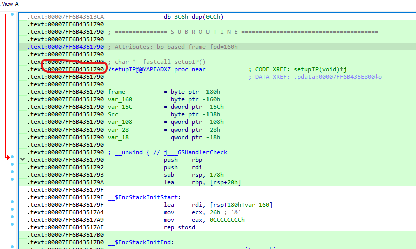 We can see that there are two functions that we are going to call using dumpulator emulation. setupString and setupIP