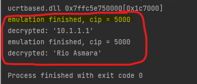 The hightlighted code above is where the call emulation will happen so that we need to put the address that we found in IDA. You can try to run the above code which will result like the below image