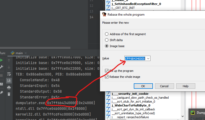 Copy the base address from python code output into IDA and Click OK