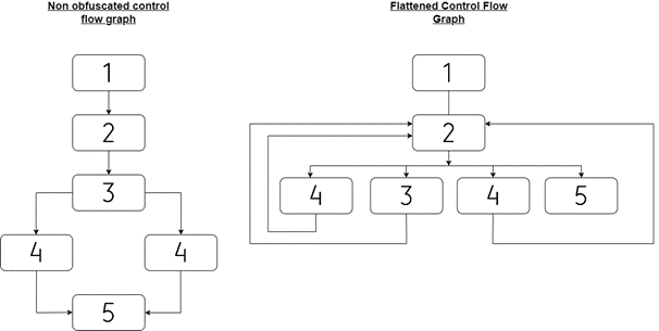Control Flow Flattening is a technique that aims to obfuscate program flow by taking away tidy program structures in favor of putting the program blocks inside a loop with a single switch statement controlling program flow.