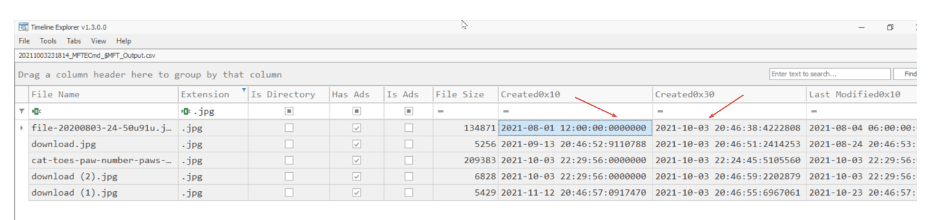 - If the 0x10 timestamp appears to occur before a 0x30 $MFT timestamp