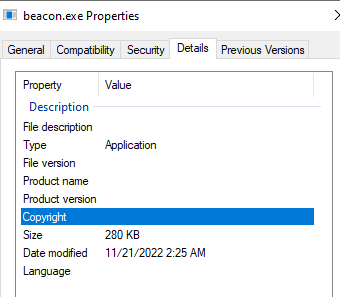 Just for example below that I droped a beacon.exe executable at C:\Temp of the compromised host that I created and modified at 11/21/2022. This file is very easy to be found by the forensic analyst because this file is very recent in C:\Temp which might give clue to the forensic that this file is malicious