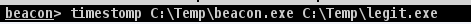 We can manipulate our beacon.exe to have the same the same time property of the legit.exe file. This could make the malicious files looks less suspicious during the endpoint forensic.