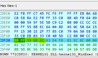 hookedAddress = GetProcAddress(hLib, "WinExec");