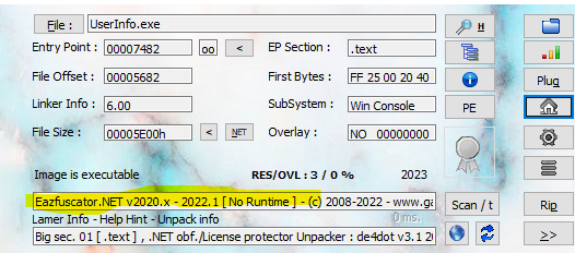 If we look at the obfuscation result by using the ExeInfo application that the Image Information says that the application has been obfuscated using Easfuscator