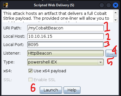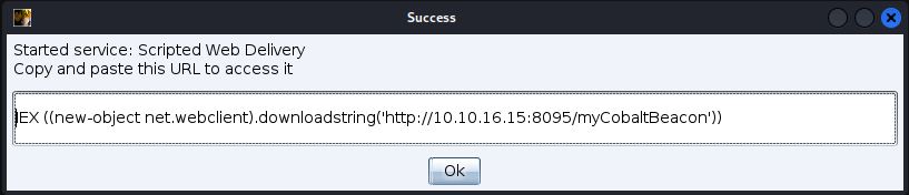 Cobaltstrike provide an easy way to deliver the beacon including hosting the beacon and prvide a command to run and execute beacon on the host. Lets generate the Scripted Web Delivery. Follow the steps below