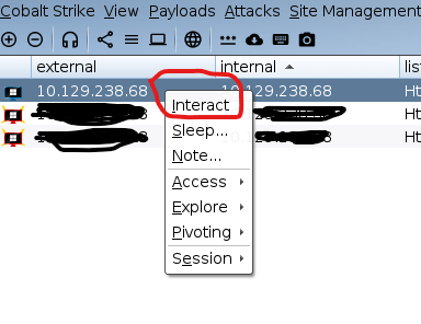 Now you can initiate to start the interaction with the beacon by right click on the row and select interact